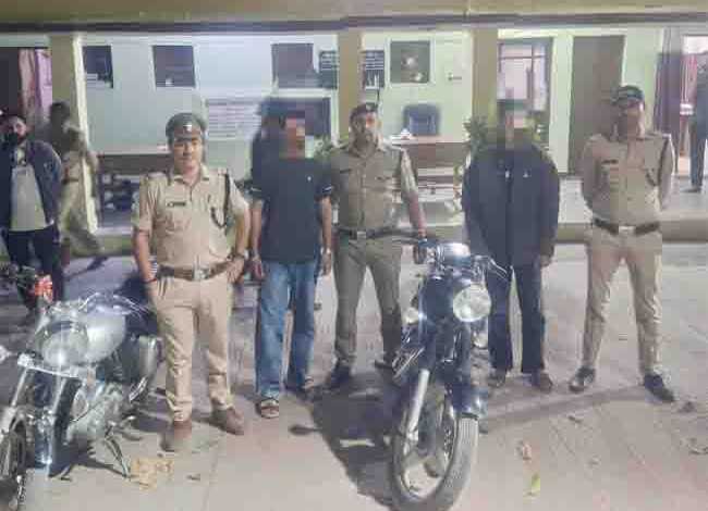 कालाढूंगी में वाहन चेकिंग के दौरान पुलिस ने दो बुलेट बाइक्स को रेट्रो साइलेंसर लगाकर पटाखे फोड़ते हुए पकड़ा। इस पर दोनों बाइक्स को सीज कर आवश्यक कार्रवाई की गई है।