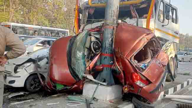 सीसीटीवी फुटेज में देखा जा सकता है कि हादसे से पहले सब कुछ सामान्य था, लेकिन अचानक एक तेज रफ्तार डंपर ने टोल टैक्स के पास एक लाल कार को टक्कर मारी और उसे घसीटते हुए काफी दूर तक ले गया। इस दौरान दो अन्य वाहन भी इसकी चपेट में आ गए, जिससे दुर्घटना में दो लोगों की मौत हो गई। हादसा इतना भीषण था कि वाहनों के परखचे उड़ गए और डंपर के नीचे बुरी तरह से दब गए।